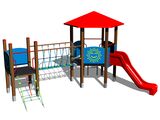 2x tower, roof, slide, sloping net access, ladder, rope bridge, 5x barrier from HDPE. More information