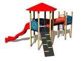 2x tower, roof, slide, crawl tunnel between the towers, sloping ramp with the rope and HDPE steps, ladder, 5x barrier from HDPE. More information